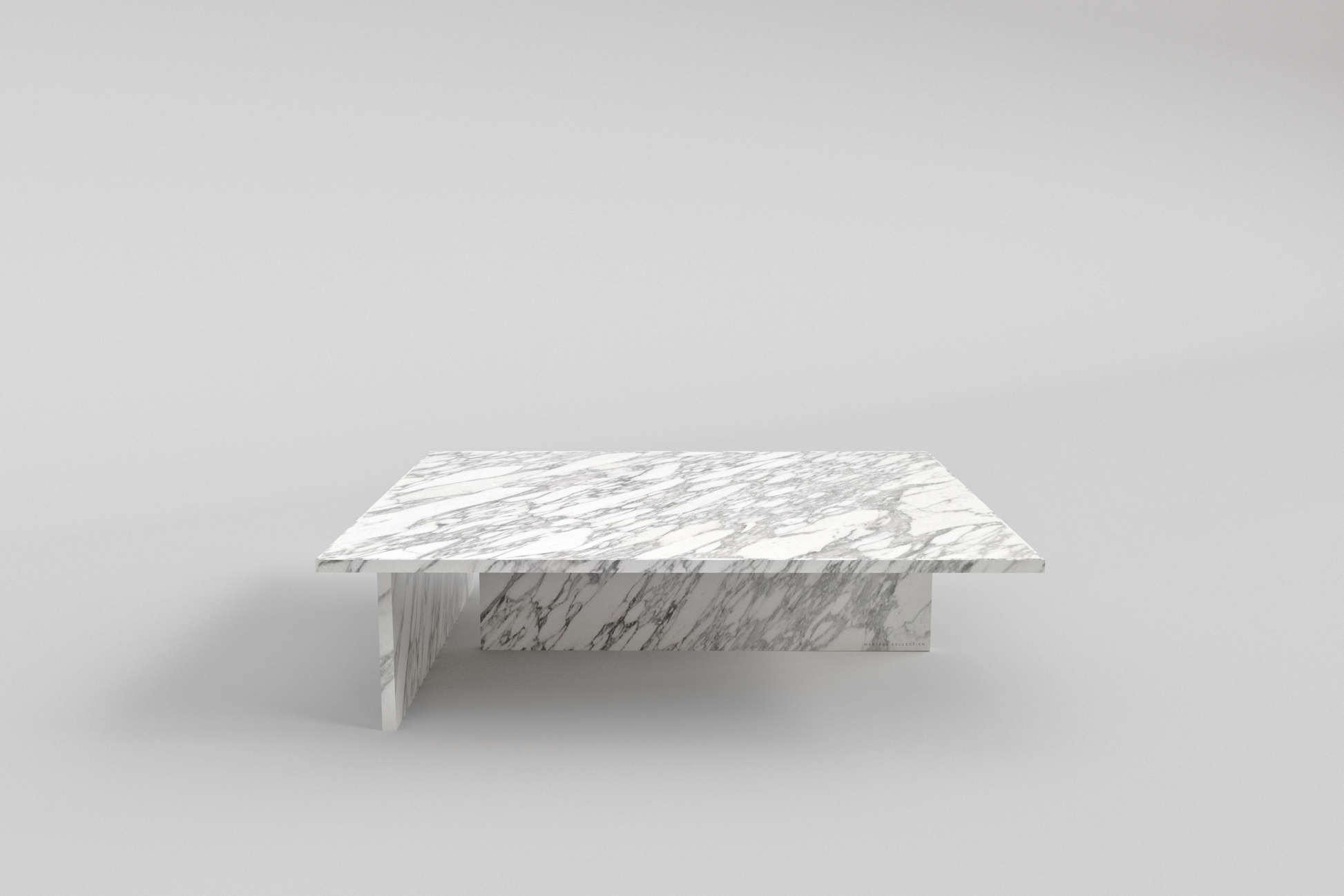 The Linea Coffee Table in Arabescato Corchia designed by Martage Collection, is defined by the balance between solid form and negative space. Its minimal and timeless design, characterized by geometric shapes, allows light to filter through, and introduces a sense of delicacy to its linear form. It can be used as a statement piece on its own or be combined with the Linea side table for a cohesive arrangement. Available in two sizes.